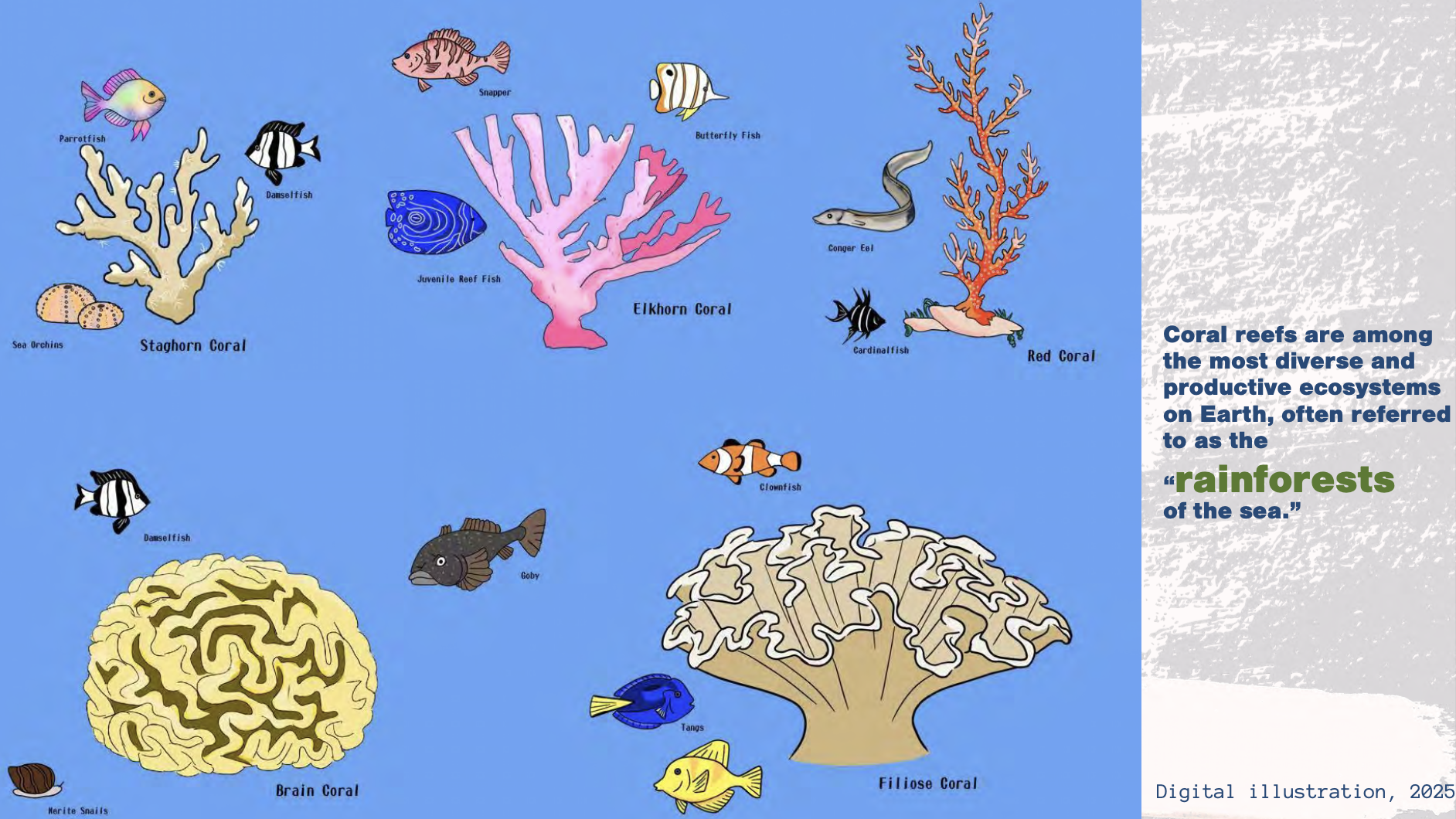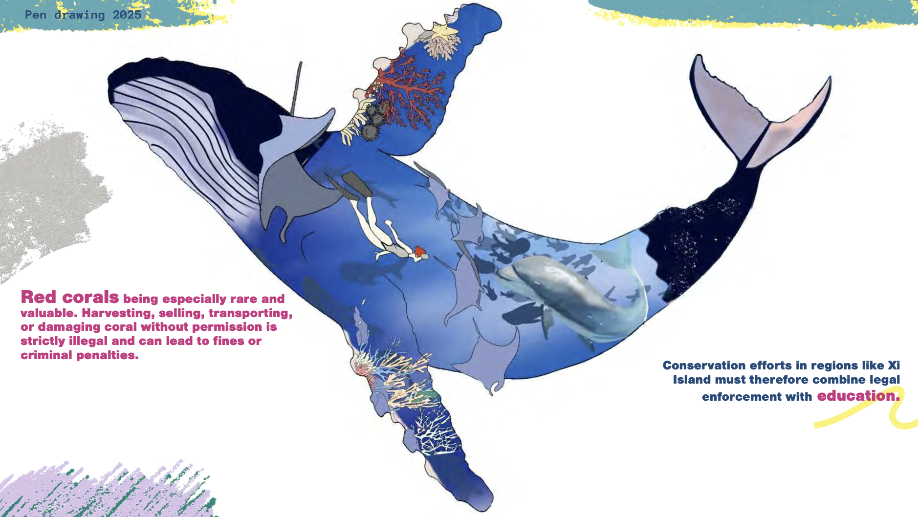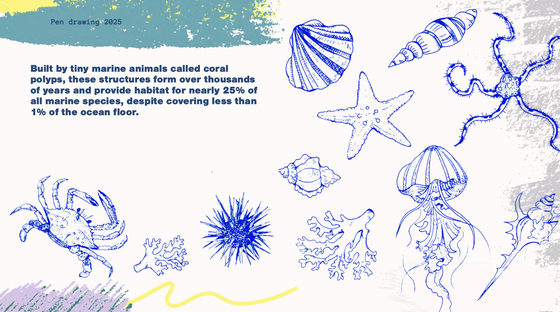 My portfolio explores the intersection of art and marine ecology. From illustrating coral restoration and coastal fragility to filming Liang Liang, a short documentary about a captive dolphin’s loneliness, my works aim to inspire curiosity, compassion, and responsibility for the delicate balance between humans and the sea.